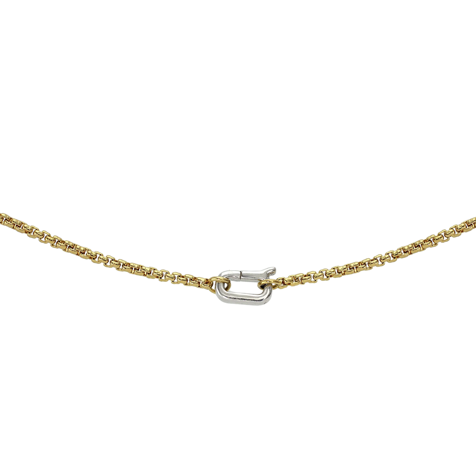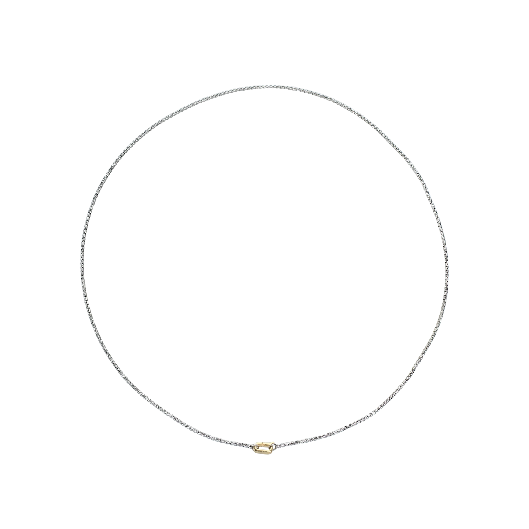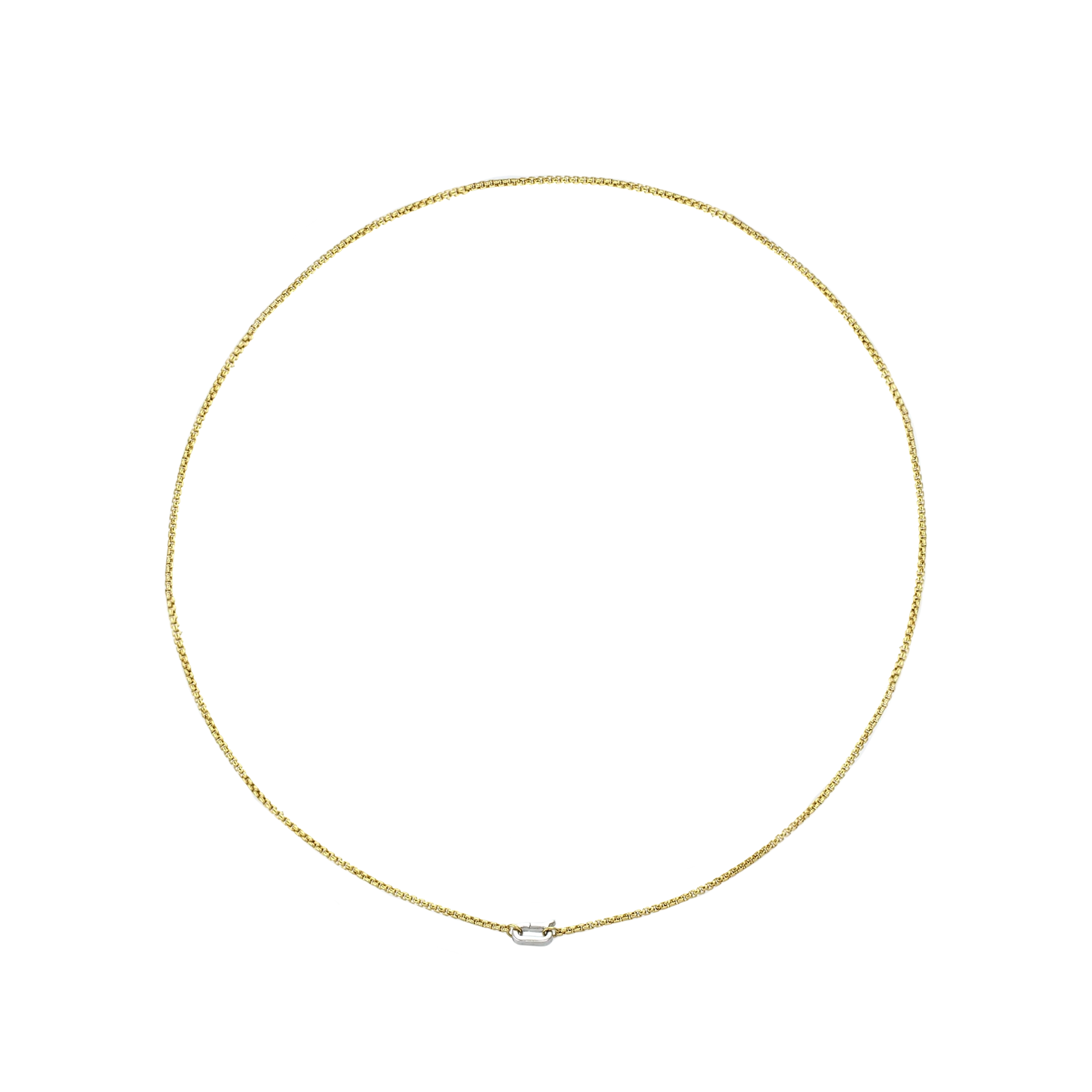 The "Mini Can Opener Slim Chain" is a dainty extra thin stainless steel chain with a 925 sterling silver 18k gold plated clasp. Perfect for every day, its water resistant so no need to take it off.