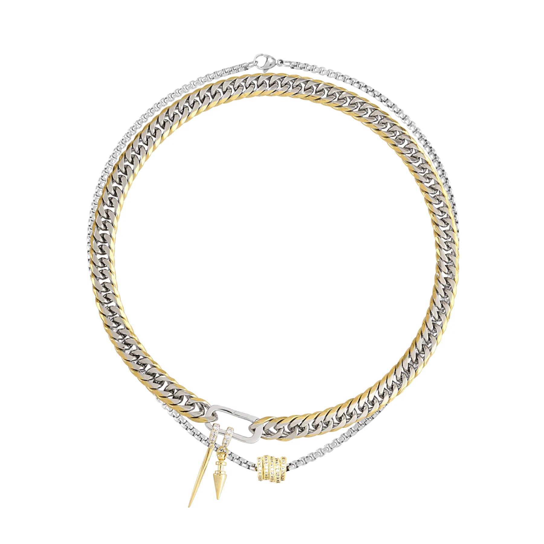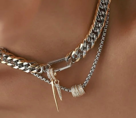 Designed with comfort and chic style in mind, the Just Click Nut Necklace Set combines 2 different chains to create a distinct style. Perfect for those who love pieces that sit high in your neck, these chains are made of 18k Gold and Rhodium Plated Stainless Steel for a striking finish.
