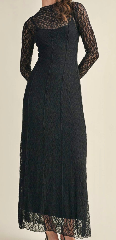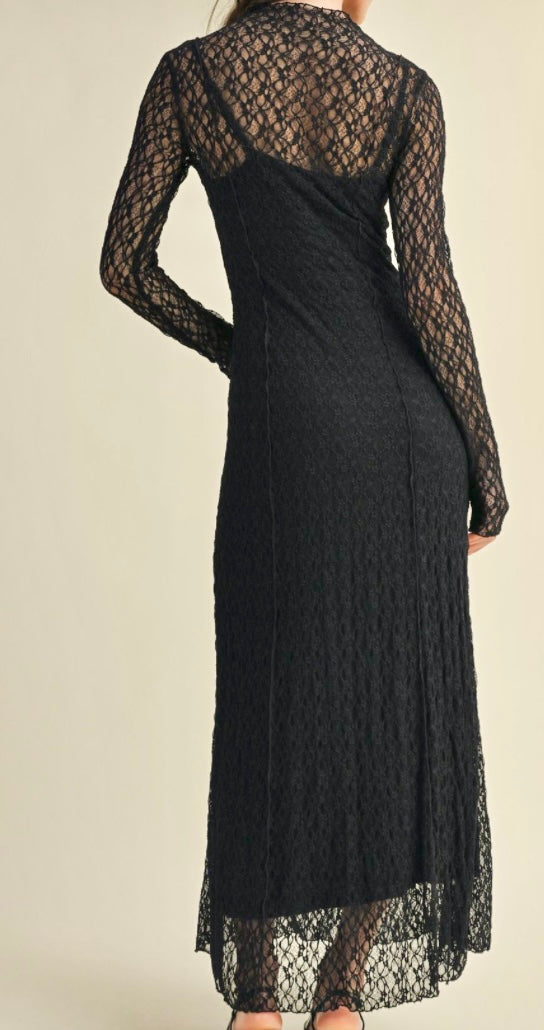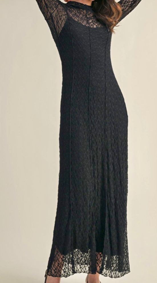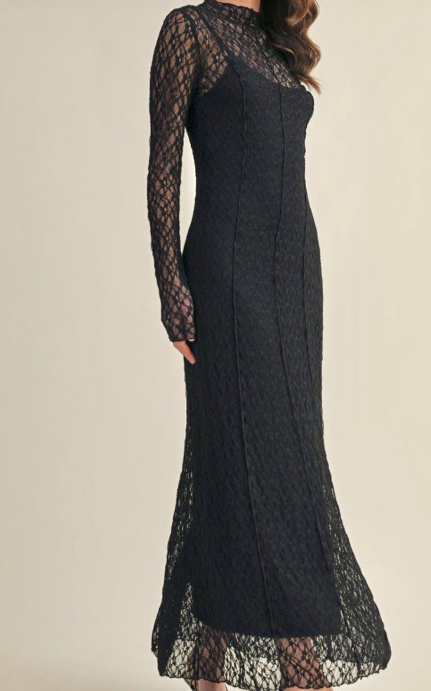 This elegant Mock Neck Lace Dress features a delicate lace overlay paired with a smooth slip lining for comfort and modesty. Designed with long sleeves, it offers a refined silhouette perfect for formal occasions or sophisticated events. The mock neck adds a modern touch, balancing classic lace with contemporary style.