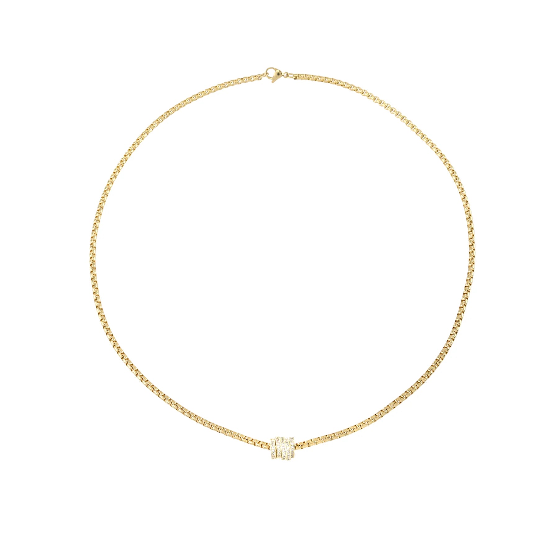 Effortlessly chic, this versatile necklace boasts a pavé nut charm, adding a touch of sparkle to elevate everyday ensembles with understated sophistication.