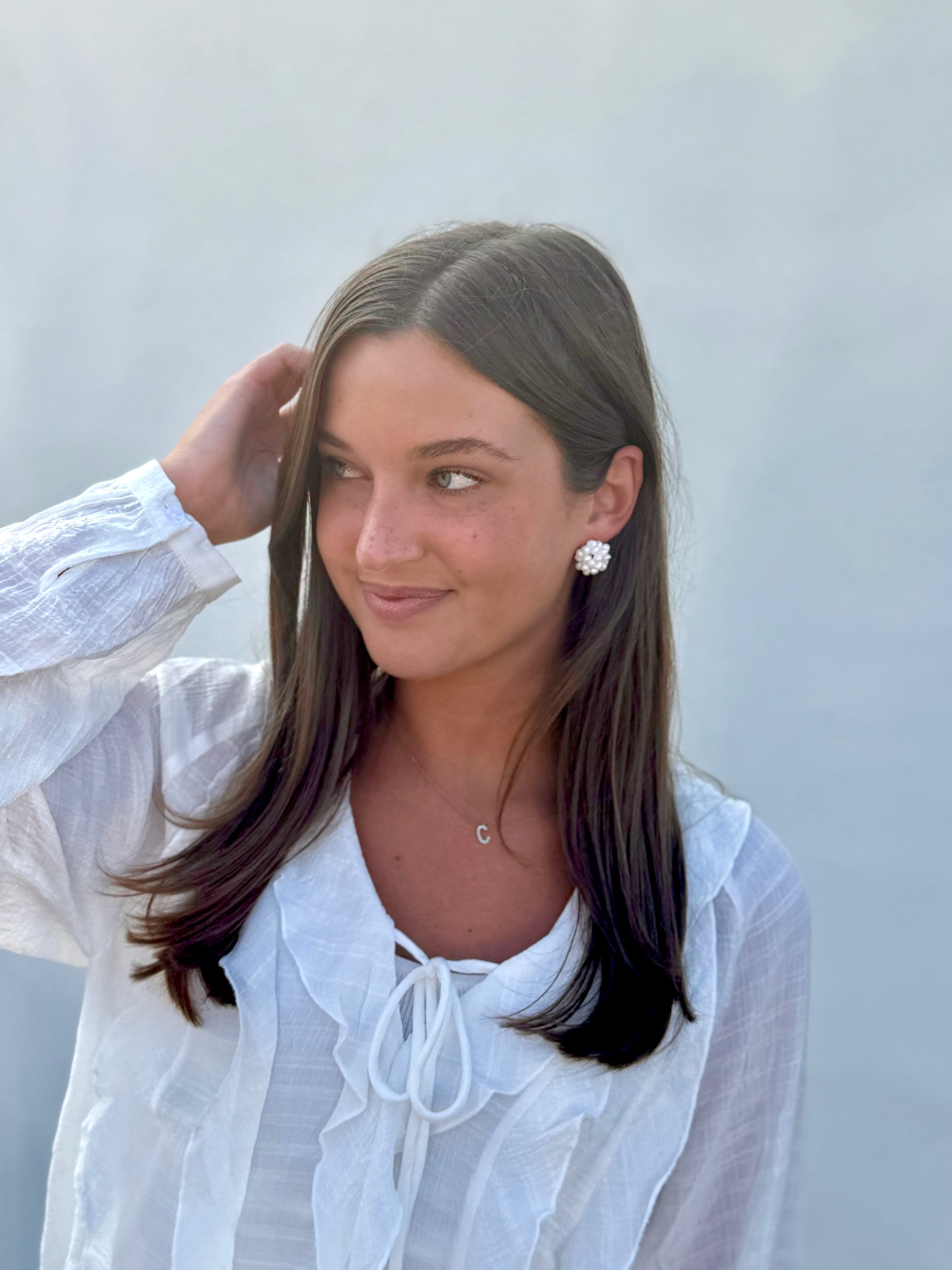 Elevate your wardrobe with this expert-crafted long sleeve blouse featuring a flattering V-neck and delicate ruffle detailing along the front. The front tie accent adds a refined touch, enhancing its classic silhouette while allowing adjustable fit. Designed to combine timeless style with subtle feminine flair, this blouse pairs effortlessly with both tailored trousers and casual denim for versatile, polished looks.