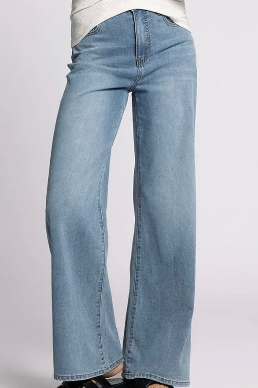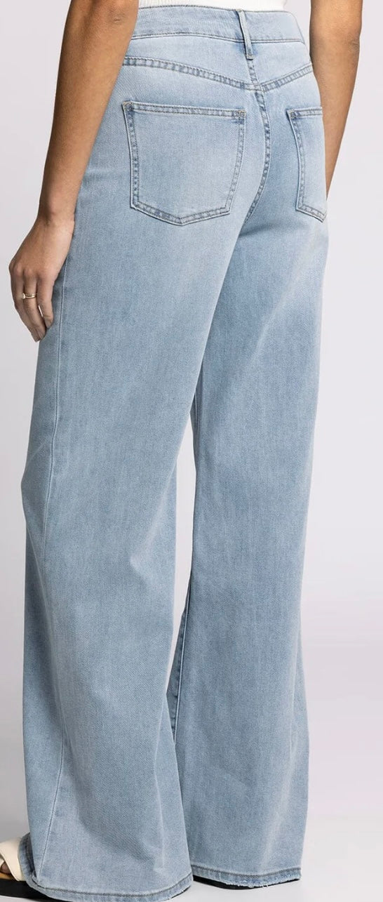These Taylor High Rise Denim Jeans feature a wide-leg silhouette crafted from lightweight fabric for all-day comfort. Designed with the classic five-pocket style, they blend timeless denim appeal with a modern, flattering fit that enhances your natural shape. Ideal for effortless style and versatility, these jeans offer both fashion and ease, perfect for elevating your everyday wardrobe.